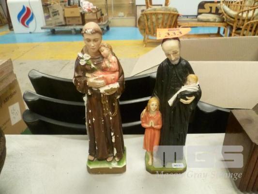 PAIR PLASTER STATUES HOLDING CHILDREN