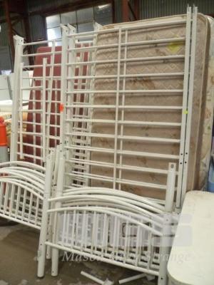 2 X METAL FRAME BUNK BEDS WITH 3 X SINGLE MATTRESSES
