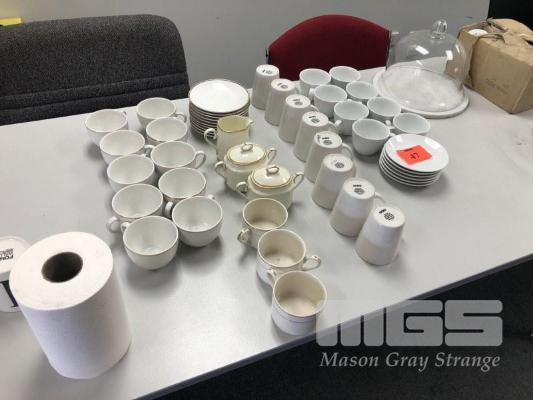HUGE QUANTITY CROCKERY, CUPS, SAUCERS, PLATES, GLASSWARE, MUGS & MORE ON TABLES
