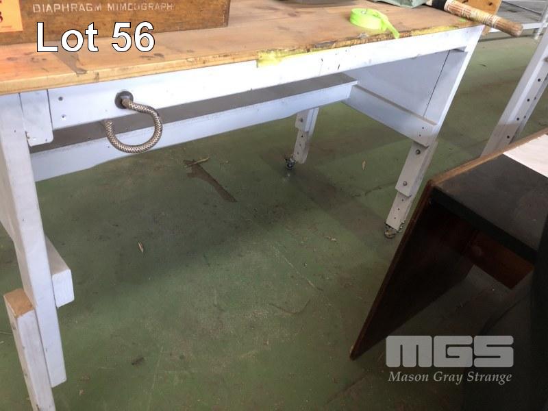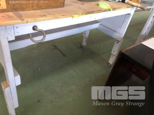 MOBILE TIMBER WORK BENCH, 1500 x 700mm WITH TIMER TOP, STEEL FRAME WORK STAND, 1180 x 740mM
