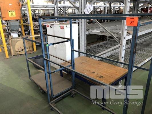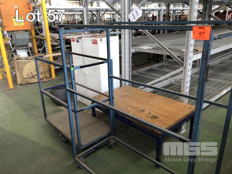 2 x MOBILE STOCK TROLLEYS, STEEL FRAME, 1200 x 550 x 1460mm & 950 x 550 x 1080mm