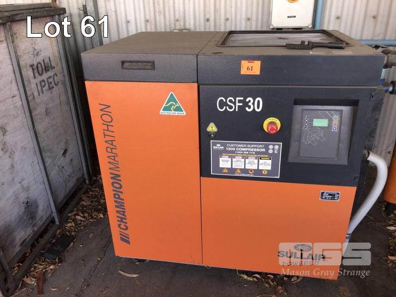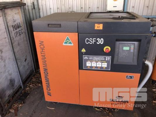 PACKAGED AIR COMPRESSOR, CHAMPION MARATHON MOD: CSF30 S/NO: 25134 HOURS: 13,000+ APPROX DOM: 2012 30kw 750SPA 415V (ELECTRICAL DISCONNECTION REQUIRED,LINE DISCONNECTION AT FIRST COUPLER)