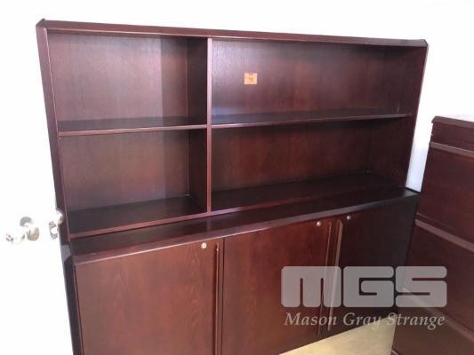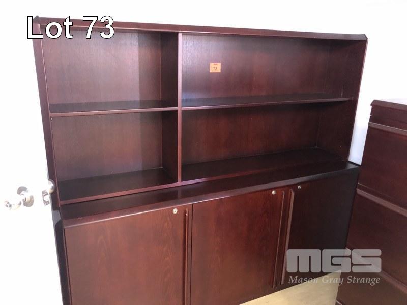 DARK ROSEWOOD LOOK SIDEBOARD, 3 x DOOR, 2 x SHELF 1800 x 1600mm (H) & MATCHING 4 DRAWER FILING CABINET