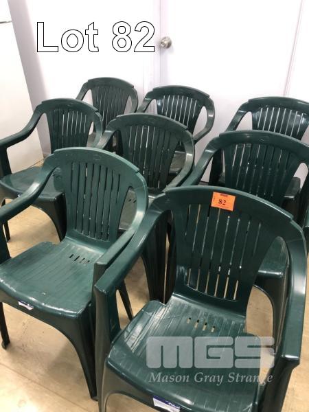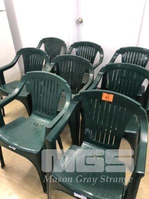 8 x PLASTIC DARK GREEN STACKABLE OUTDOOR CHAIRS