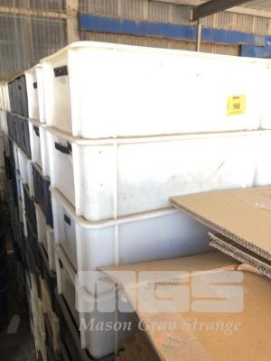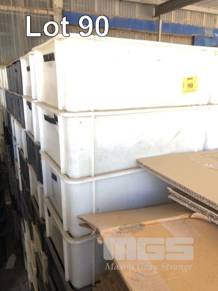 70 x PLASTIC STORAGE TUBS, GREY & WHITE, 550 x 350 x 200mm APPROX, STACKABLE
