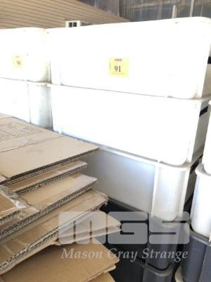 70 x PLASTIC STORAGE TUBS, GREY & WHITE, 550 x 350 x 200mm APPROX, STACKABLE
