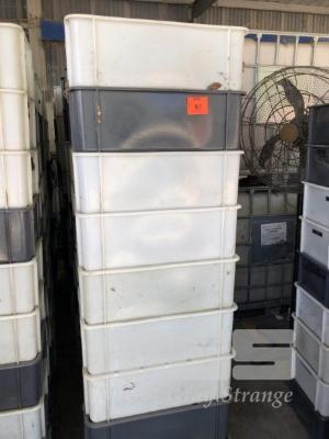 70 x PLASTIC STORAGE TUBS, GREY & WHITE, 550 x 350 x 200mm APPROX, STACKABLE
