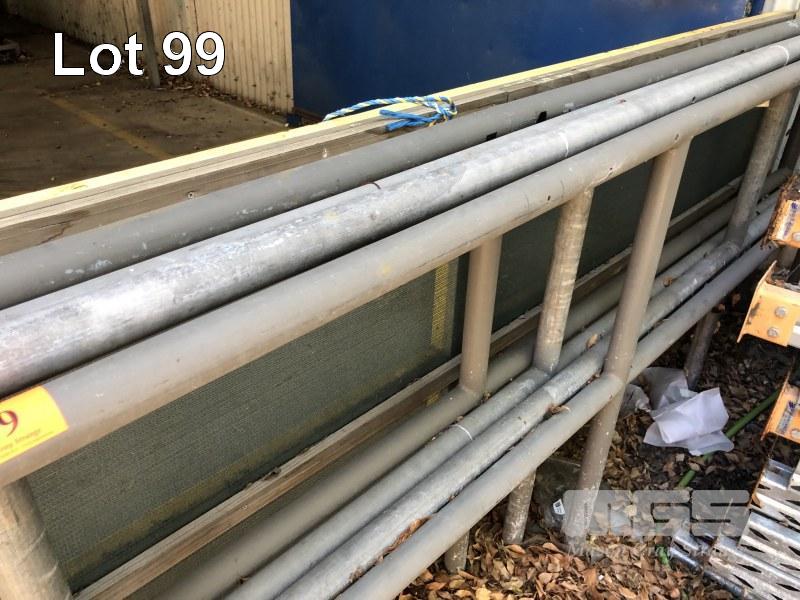 ASSORTED HEAVY DUTY GALV HAND RAILS, 4 SECTIONS, 5-6m (L) ROUND PIPE. 1m (H)