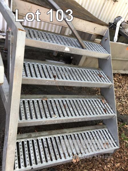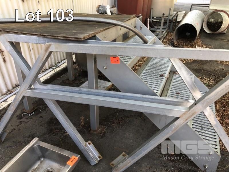 ELEVATED PLATFORM, 1000 x 1000mm WITH NON SLIP GALV TREADS, 1000mm (W) HEAVY DUTY STEEL FRAME AND HAND RAILS.