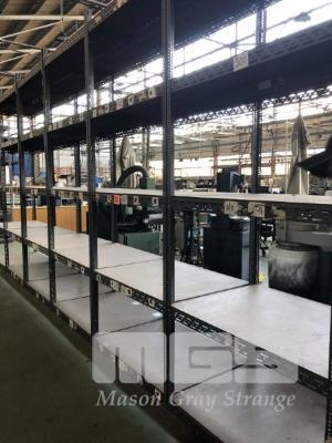 3 x SLOTTED ANGLE SHELF UNITS, 3200 (H) x 1230 (W) x 930mm (D) 5 TIER WITH MASONITE SHELVES HEAVY DUTY