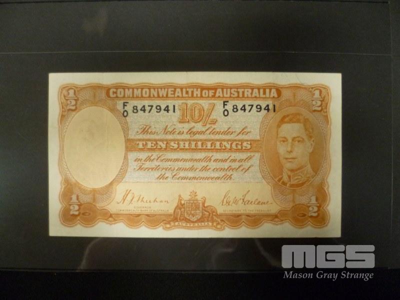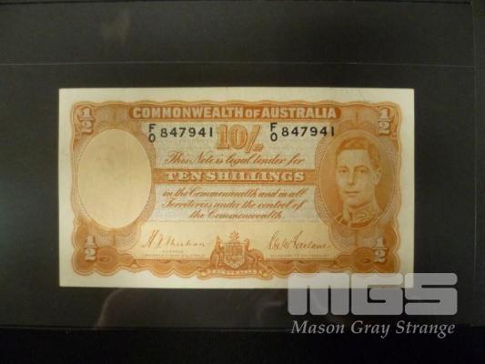 1938 10 SHILLING NOTE SHEEHAN MCFARLANE ORANGE SIGNATURE