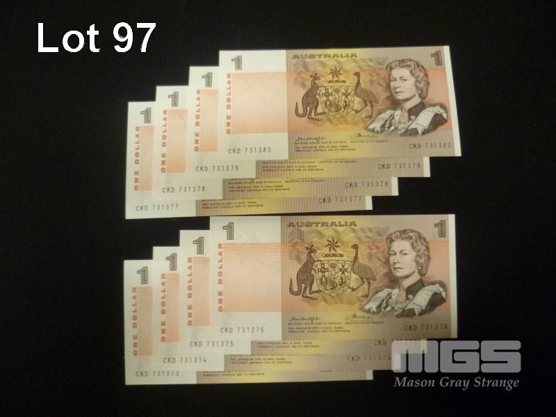 1976 8 x $1.00 GOTHIC SIDE THREAD CONSECUTIVE NOTES KNIGHTS WHEELER UNC