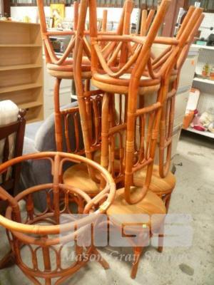 SET 10 x CANE DINING CHAIRS & ROUND DINING TABLE (GLASS TOP MISSING)