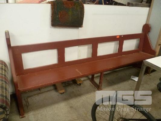 BROWN PAINTED TIMBER CHURCH PEW