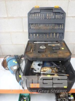 PLUNGE ROUTER KIT, GMC INC 1550w ROUTER, 240V, ASSORTED ROUTER TIPS, WITH CARRY CASE & 230mm ANGLE GRINDER