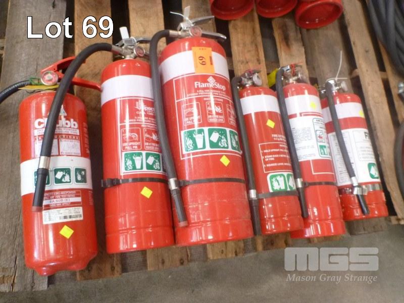 6 x FIRE EXTINGUISHERS, DRY POWDER, ASSORTED SIZES 5 x 4.5kg & 1 x 9kg