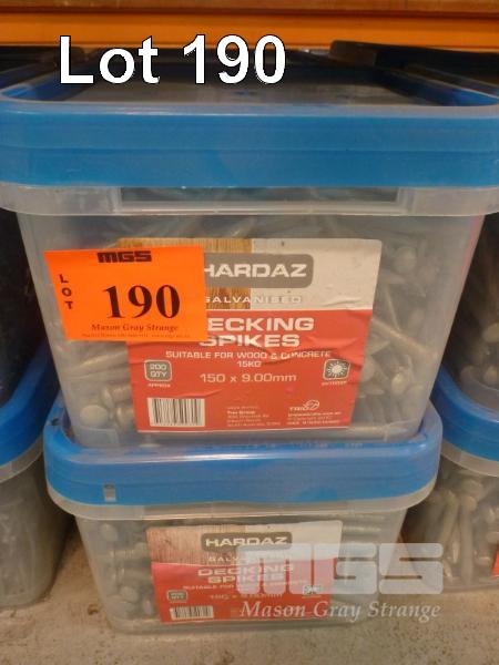GALV DECKING SPIKES, HARDAZ 150 x 9mm, 4 x TUBS, 200/TUB
