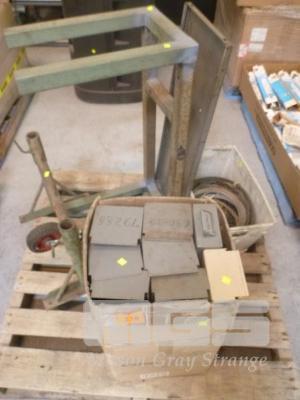 2 x ASSORTED FABRICATED STEEL FRAME STANDS & PARTS DRAWERS, WITH WIRE ROPE (1 x TUB)