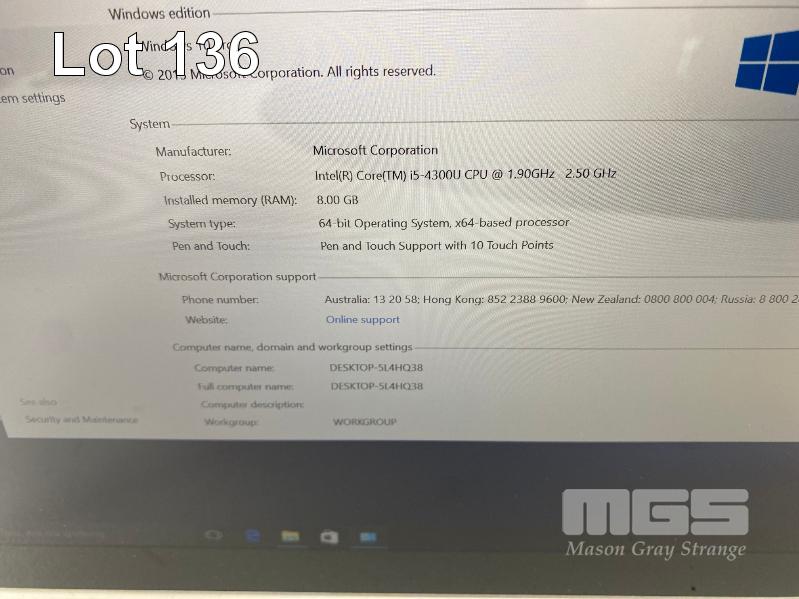TABLET PC, MICROSOFT SURFACE PRO 3, MODEL 1631, CORE i5 4300U (4TH GEN) @ 1.9GHz, 8GB RAM, 256GB SSD, 12" TOUCHSCREEN, Wi-Fi, WINDOWS 10 PRO INSTALLED & 44W POWER SUPPLY (1800) S/N:025694251853