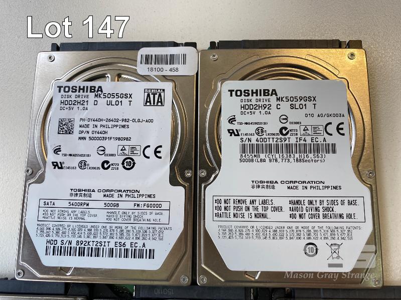 5 x ASST 500GB SATA HARD DRIVES, 2.5"