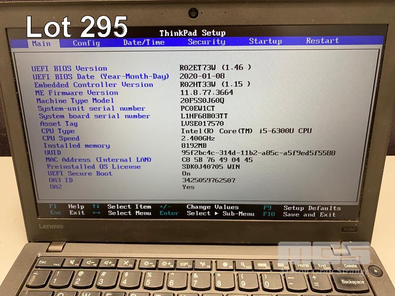 LAPTOP, LENOVO THINKPAD X260 (20F5S0J60Q), CORE i5 6300U (6TH GEN) @ 2.4GHz, 8GB DDR4 RAM, 275GB SSD, 12.5" WIDESCREEN (1366x768), INTEL HD VIDEO, Wi-Fi, BLUETOOTH, WINDOWS 10 PRO INSTALLED & POWER SUPPLY (NOTE: MINOR DAMAGE TO CASING) S/N:PC0EW1CT