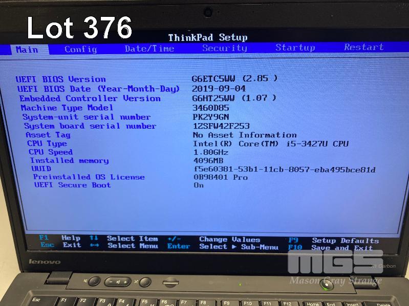 LAPTOP, LENOVO THINKPAD X1 CARBON (3460D85), CORE i5 3427U (3RD GEN) @ 1.8GHz, 4GB DDR3 RAM, 256GB SSD, 14" WIDESCREEN (1600x900), INTEL HD VIDEO, Wi-Fi, BLUETOOTH, WINDOWS 10 PRO INSTALLED & POWER SUPPLY S/N:PK2Y9GN
