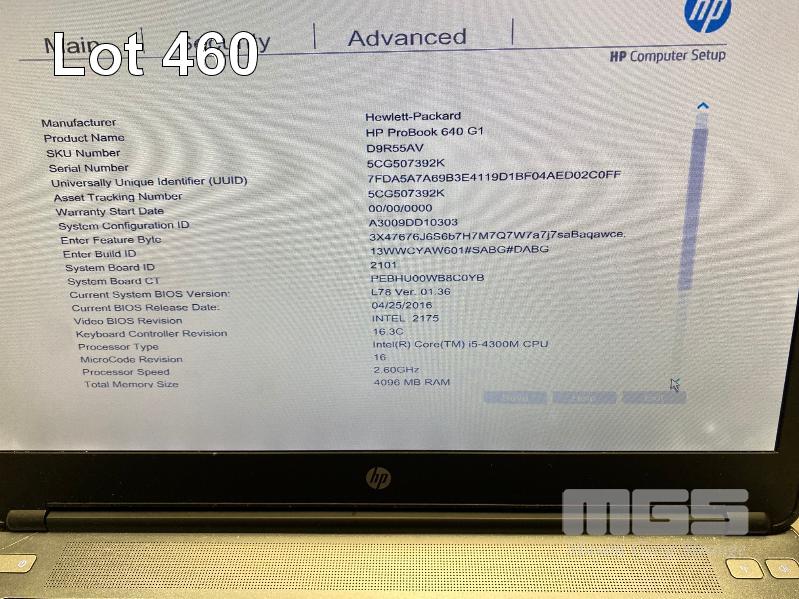 LAPTOP, HP PROBOOK 640 G1 (D9R55AV), CORE i5 4300M (4TH GEN) @ 2.6GHz, 4GB DDR3 RAM, 128GB SSD, DVD-RW, 14" WIDESCREEN (1366x768), INTEL HD VIDEO, Wi-Fi, BLUETOOTH, HP LT4112 4G MODULE, WINDOWS 10 PRO INSTALLED & POWER SUPPLY (NOTE: WHITE SPOT SCREEN BLEMISHES, SOME KEYS WORN, BATTERY NOT CHARGING) S/N:5CG507392K