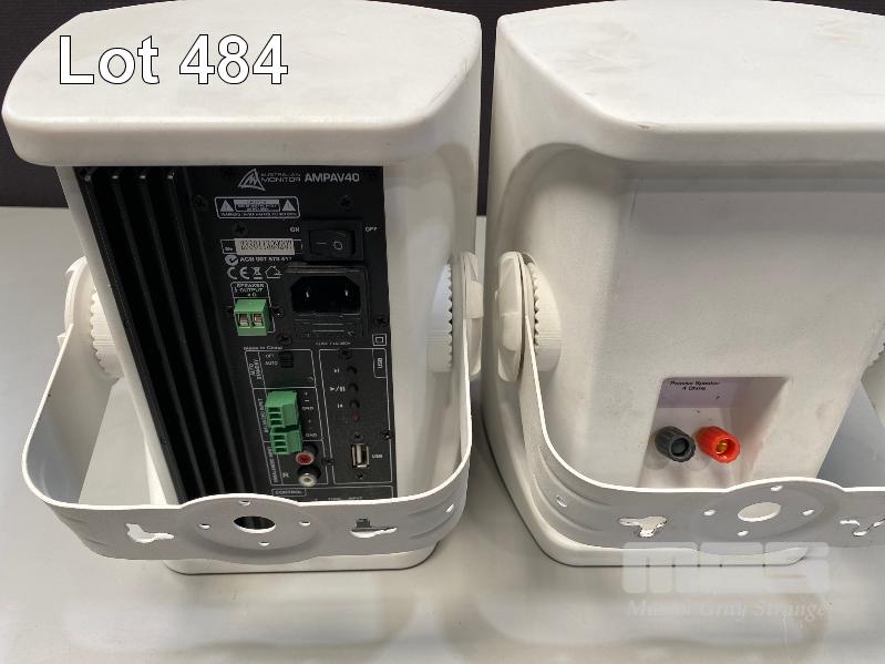 AUSTRALIAN MONITOR AMPAV40 POWERED & PASSIVE SPEAKERS, 40W WITH BRACKETS & POWER CABLE ONLY