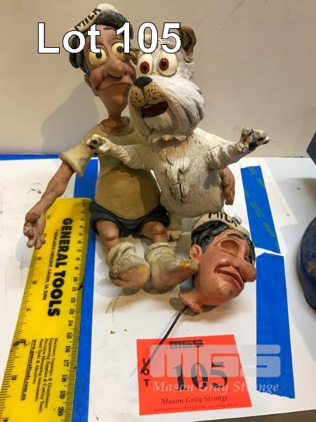 SCHMACKO'S MAX THE WEST HIGHLAND WHITE TERRIER WITH HIS BUDDY THE MILKMAN. LOT ALSO HAS REPLACEMENT HEAD FOR MILKMAN. BOTH MODELS ARE FOAM LATEX. THESE ARE NOT TOYS