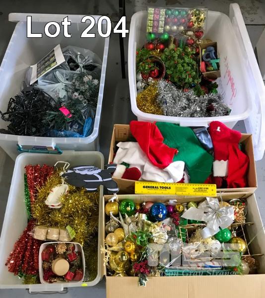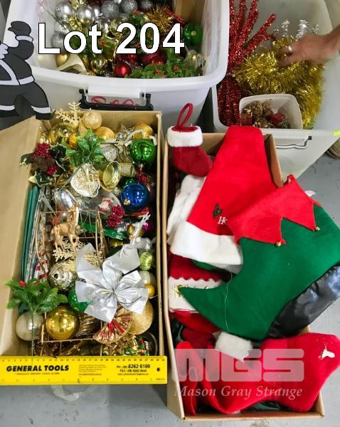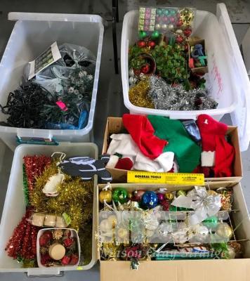 ASSORTMENT OF CHRISTMAS DECORATIONS INCLUDING OPERATING TREE LIGHTS. ALSO COMES WITH A TREE