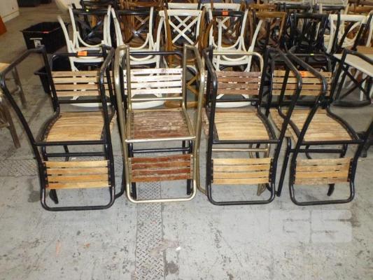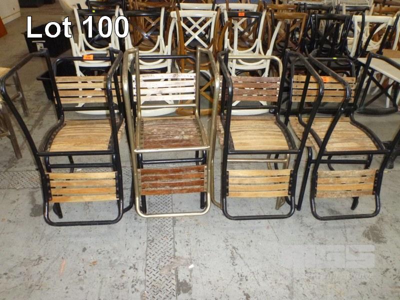 8 x CAFE CHAIRS, TIMBER SLAT, STEEL FRAME