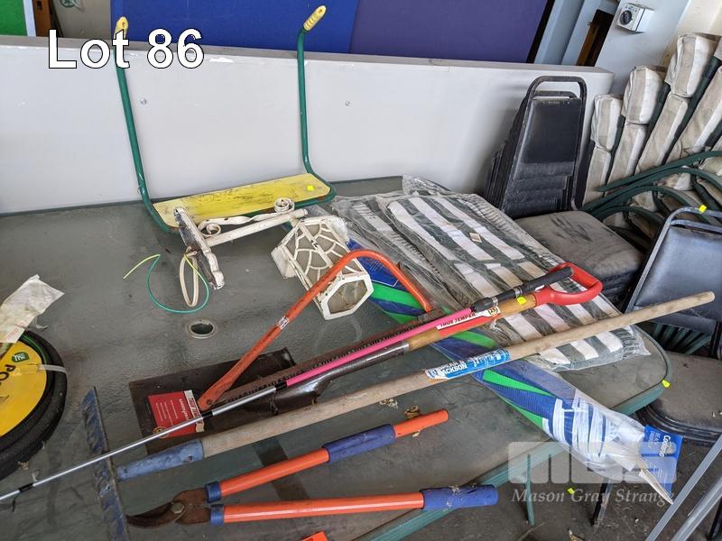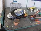 ALUMINIUM FRAME 9 PIECE OUTDOOR SETTING INC RECTANGULAR GLASS TOP TABLE, 6 x ARM CHAIRS, GARDEN SUPPLIES, STACKABLE CHAIRS, SHELF UNIT & CLOTHES RACK