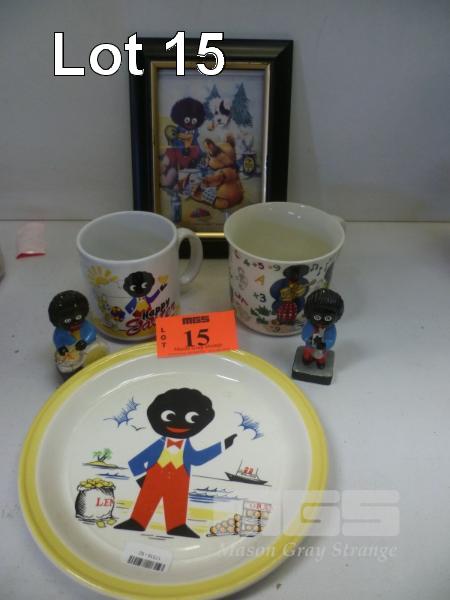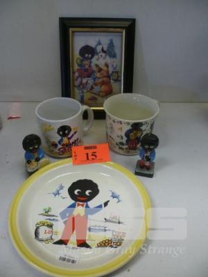 GOLLIWOG COLLECTABLES, INC HAND PAINTED FIGURINES, PLATE, FRAMED PRINT & 2 x MUGS