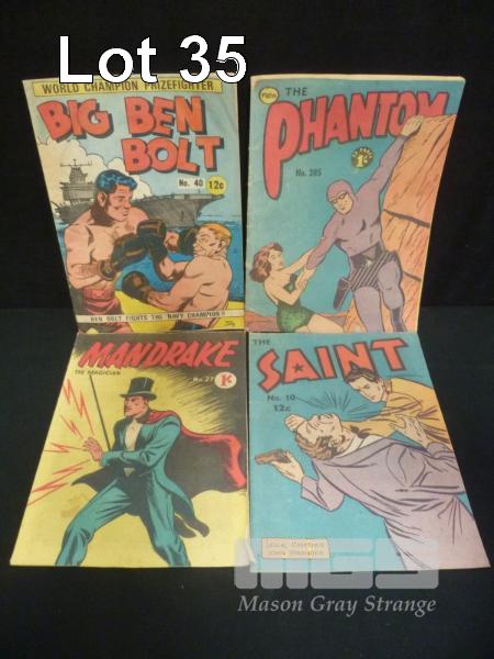 4 x EARLY COMICS INC THE PHANTOM No 285, MANDRAKE, No 27, THE SAINT, No 10 & BIG BEN BOLT, No 40