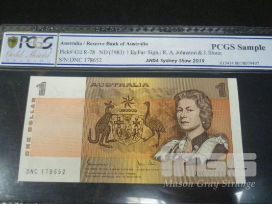 1982 $1.00 NOTE RARE PCGS SAMPLE NOTE " ANDA SYDNEY SHOW 2019"