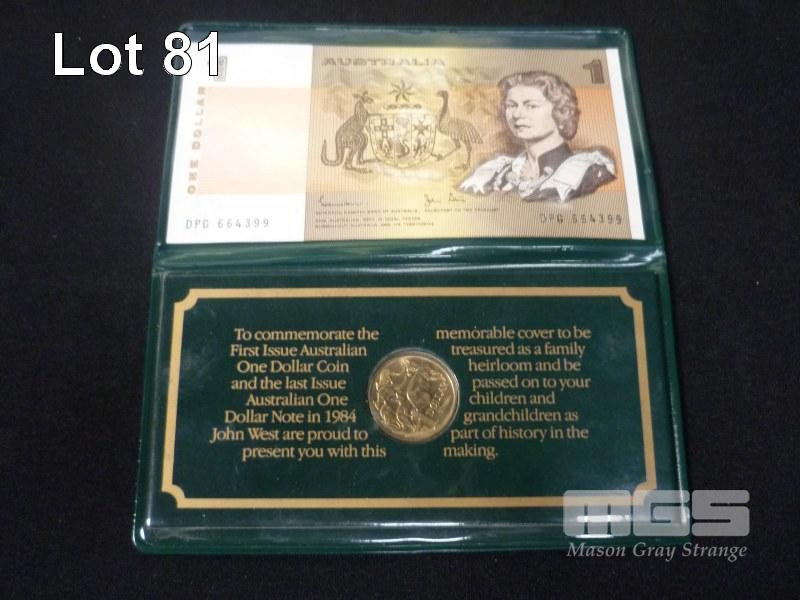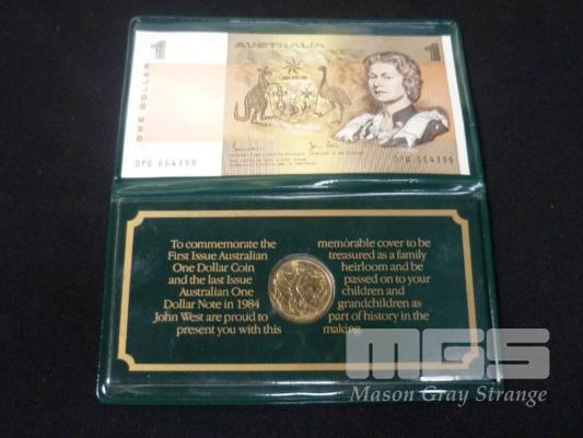 JOHN WEST 1985 AUST LAST NOTE 1ST COIN SET IN WALLET