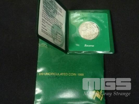 1988 $10.00 UNC BICENTENNIAL FINE SILVER COIN IN HOLDER
