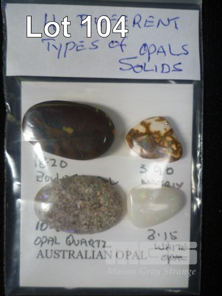 4 X ASSORTED SOLID OPALS, INC; BOULDER 18.2 CTS, MATRIX 3.9 CTS, QUARTZ 10.6 CTS, WHITE 3.15 CTS