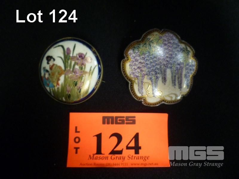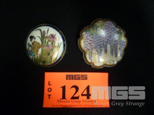 2 X EARLY CLOISONNE BROOCHES, 1 X ORIENTAL THEME, 1 X FLORAL