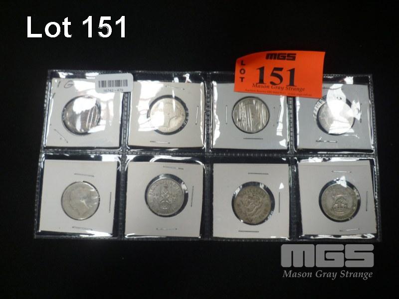 8 X AUSTRALIA & GREAT BRITAIN SILVER SHILLINGS