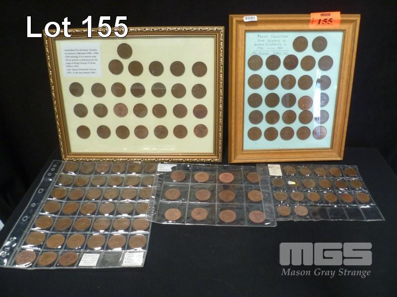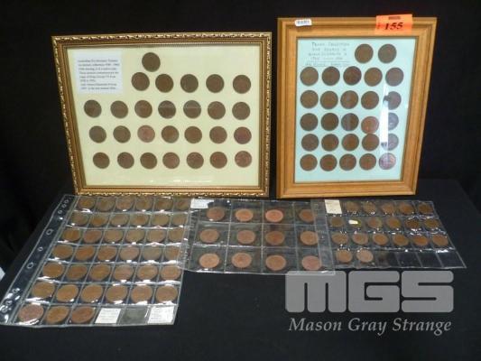 2 x FRAMED PENNY COLLECTIONS, 1938-1964 (NO 1946), SHEET OF PENNYS, 12 x 1964 PENNYS, (UNC) & HALF PENNYS, 1941-1964