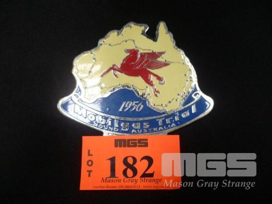 1956 MOBIL TRIAL ENAMEL CAR GRILL BADGE