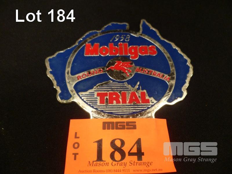 1958 MOBIL GAS TRIAL ENAMEL CAR GRILL BADGE