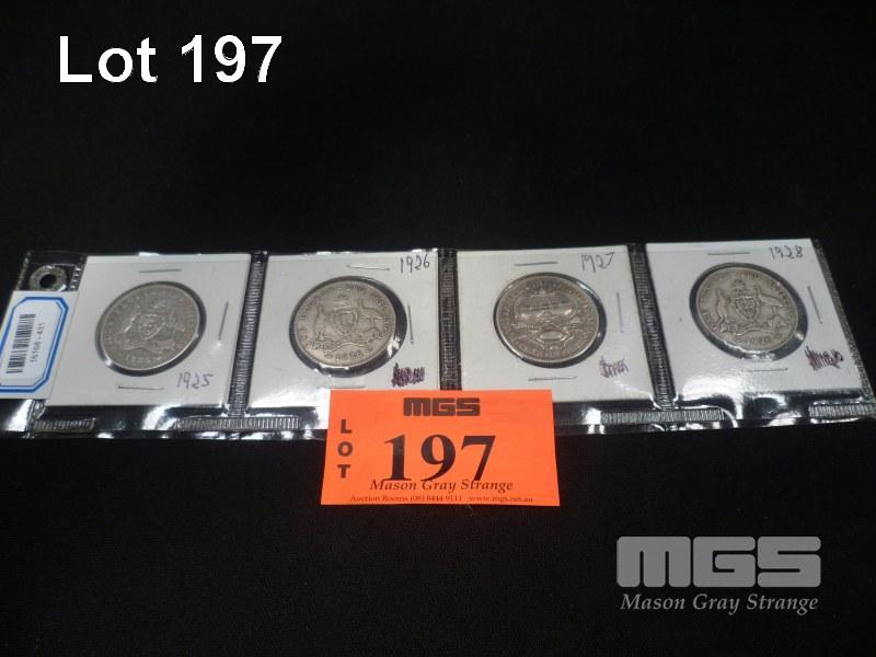 FLORINS, SILVER AUSTRALIAN, 1925, 1926, 1927, 1928