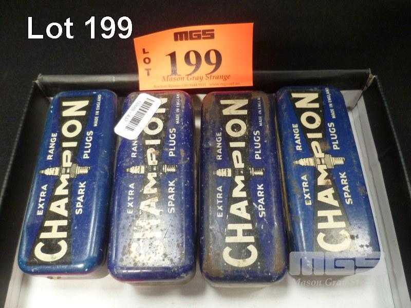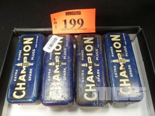 4 x CHAMPION SPARK PLUG TINS WITH PLUGS
