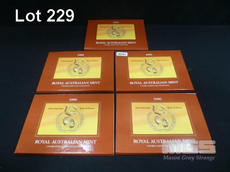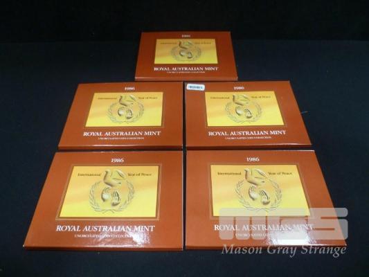 5 X ROYAL AUSTRALIAN MINT, 1986, UNCIRCULATED COIN COLLECTION, 'INTERNATIONAL YEAR OF PEACE'