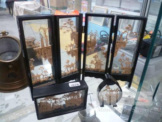 3 x ORIENTAL CORK DIORAMAS, 21.5cm TALLEST