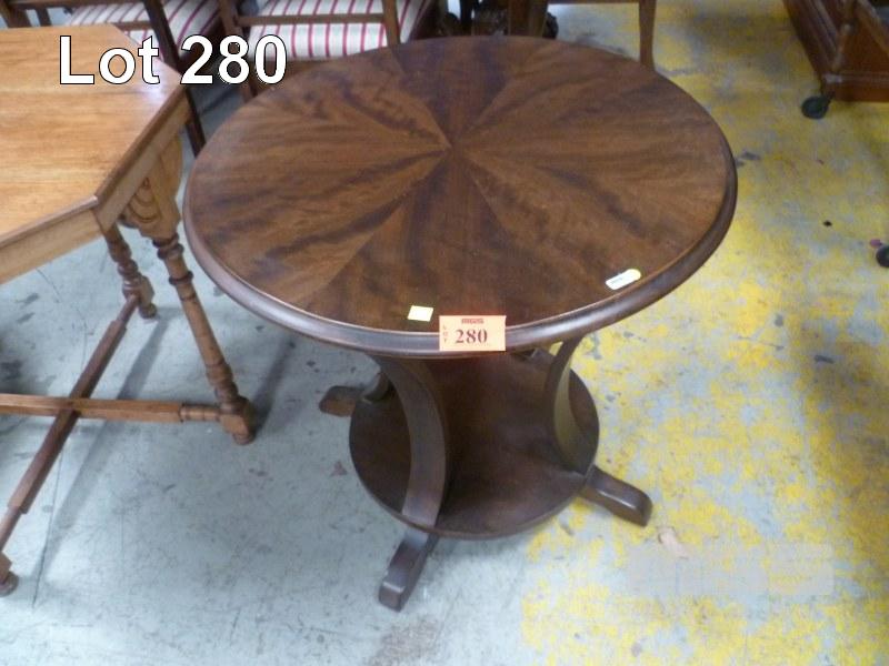 ROUND TIMBER ART DECO OCCASIONAL TABLE, BENTWOOD LEGS