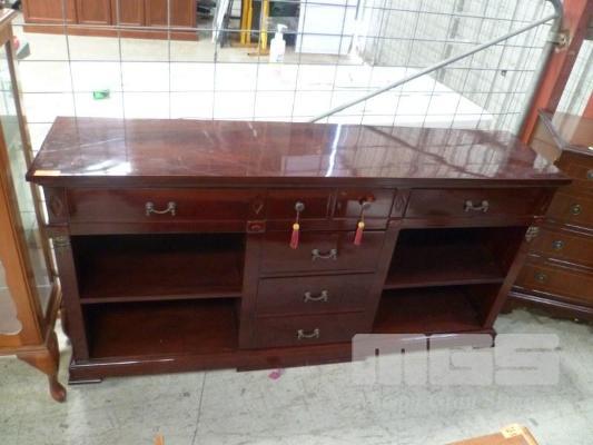 WOHLERS MAHOGANY HIGH GLOSS DINING ROOM BUFFET UNIT, 7 DRAWER WITH SIDE SHELF COMPARTMENT, BRASS HANDLES & FEATURES