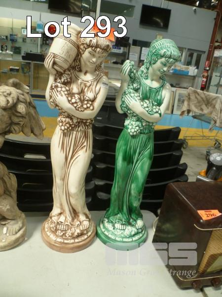 PAIR MATCHING ROMAN ERA CERAMIC LADIES HOLDING GRAPES, 60cm (H)